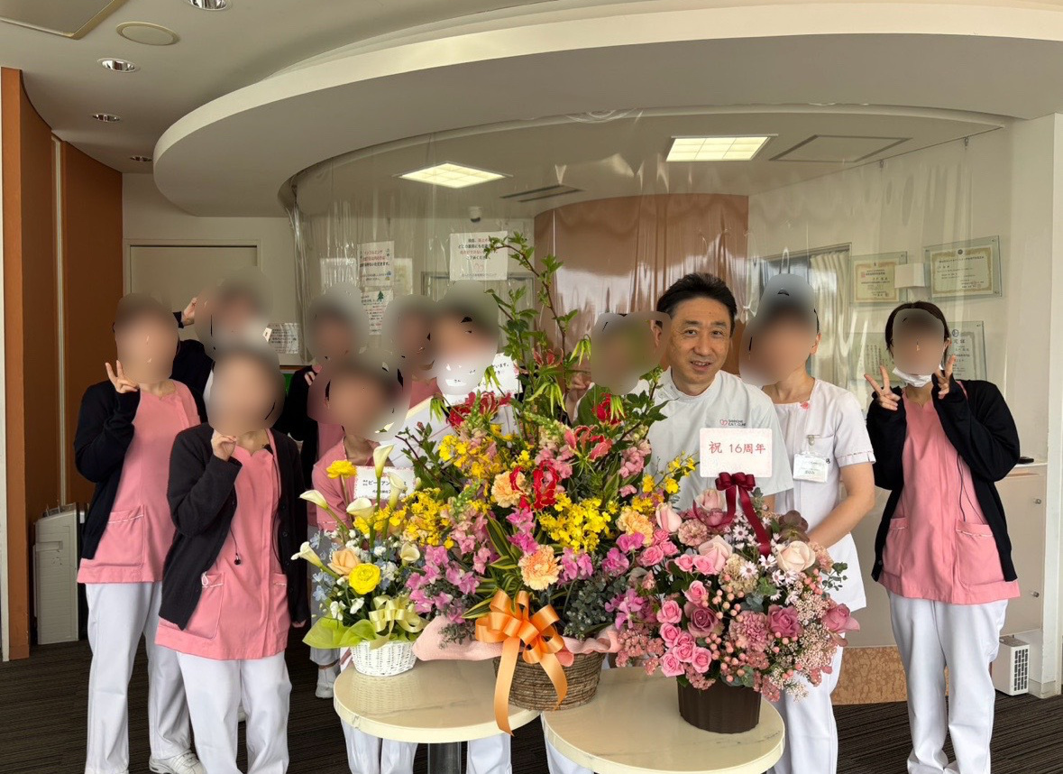 おかげさまで当院は令和7年4月7日をもって開業16周年を迎えました。たくさんのお祝いのお花、プレゼントをいただき、ありがとうございました。