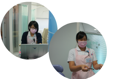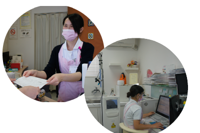 診療がスムーズに進むようにインカムで連絡を取って、協力し合います。