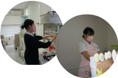診療がスムーズに進むようにインカムで連絡を取って、協力し合います。